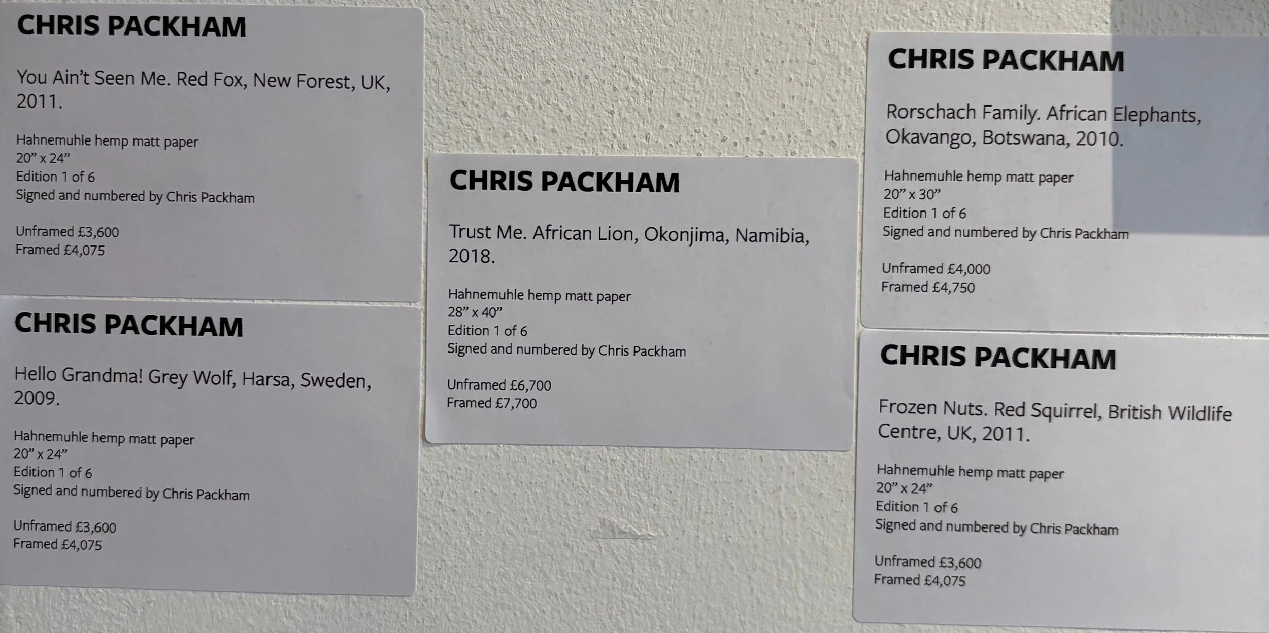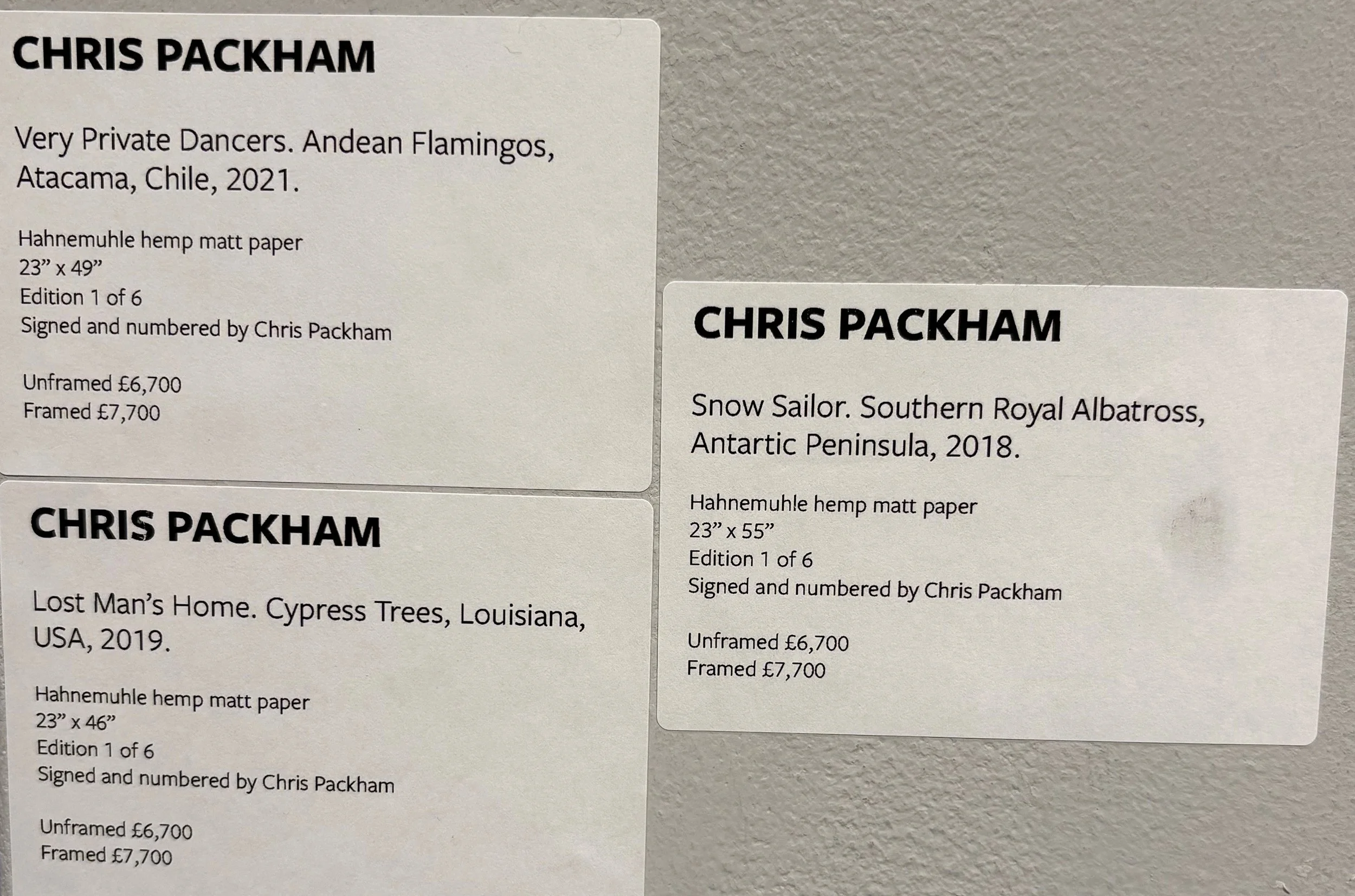 So I popped up to London to see Chris Packham’s debut London show, and I wasn’t disappointed. If you get the chance do go, as Chris say’s, it’s not often that we get to see his work printed. Seeing images printed is so different to viewing them on a screen, all have been produced using Hahnemuhle Hemp Matt Paper and the results are exquisite. The exhibition sponsored by MPB and is on for a month at Iconic Images Gallery, and entry is free!
