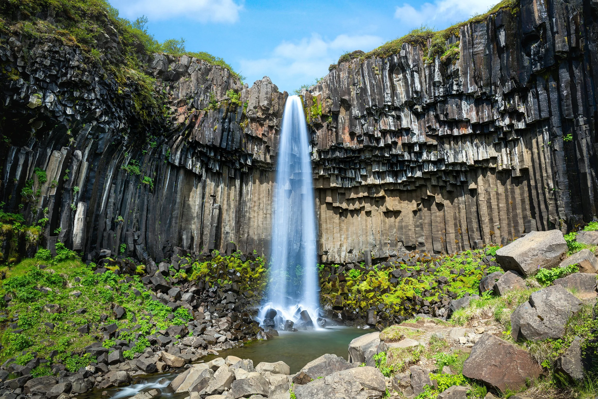 Svartifoss, meaning "Black Falls," is one of Iceland’s most striking and uniquely beautiful waterfalls, located in Vatnajökull National Park in the Skaftafell area of southeast Iceland. What makes Svartifoss truly unforgettable is not its height, just around 20 meters, but the dramatic basalt column backdrop that surrounds it like a natural cathedral.